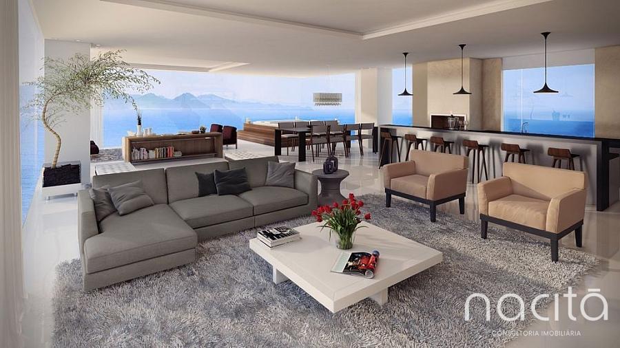 01 apartamento por andar Mezanino com pub Vista para o mar e para a montanha Box de praia Infraestrutura para automação residencial Medidores individuais de água e gás 02 elevadores sociais e 01 de serviço Sistema interno de segurança Sala administrativa de condomínios Hall de serviço e social independentes.