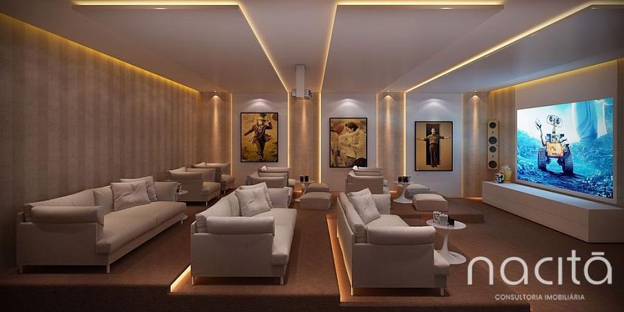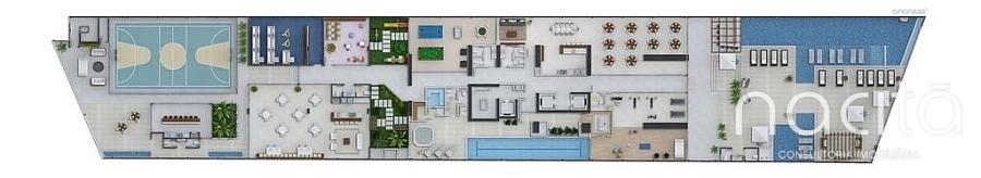 1.565m de área de lazer e mais de 200m de deck Piscina externa adulta de 118m com raia e bar molhado Piscina infantil com ondas Salão de festas com cozinha gourmet e lounge Sala de jogos Baby room / Playground Cinema / Pub / Wine bar Espaço saúde com academia, yoga, pilates, sala de massagem, piscina aquecida com raia de 16m, hidromassagem, saunas seca e úmida Quiosque gourmet Quadra poliesportiva Praça da lareira Jardins e espelhos d'água Valor IPTU: Cobrado através do condomínio