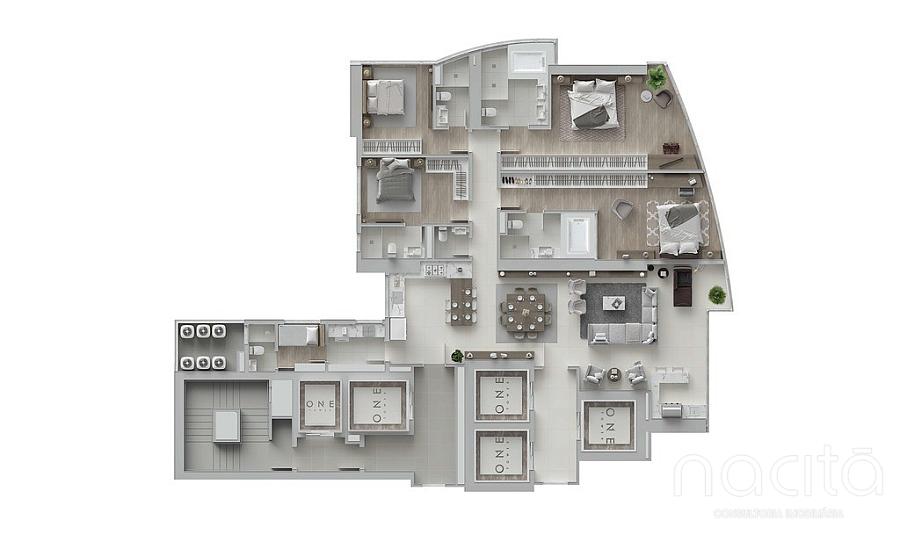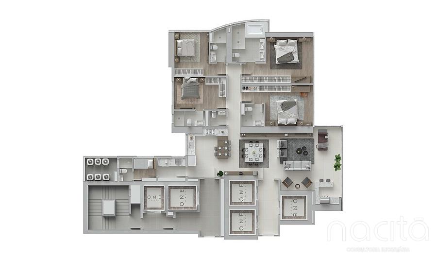 4 SUÍTES 2 SALAS BANHEIRO SOCIAL LAVABO 3 GARAGENS - 196,13 M2 DE ÁREA PRIVATIVA