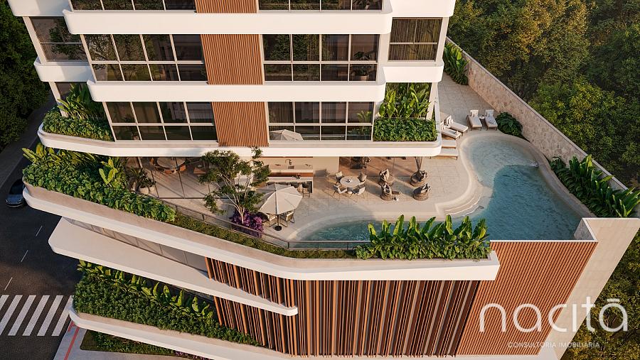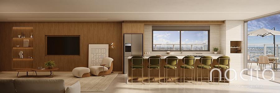 O empreendimento conta com apenas 2 apartamentos por andar, proporcionando privacidade e amplitude, com plantas inteligentes e espaços generosos. São 234,07 m² privativos, distribuídos em 4 suítes, amplo living, cozinha integrada e sacada com vista para o mar e para a cidade. As unidades oferecem 3 vagas de garagem.