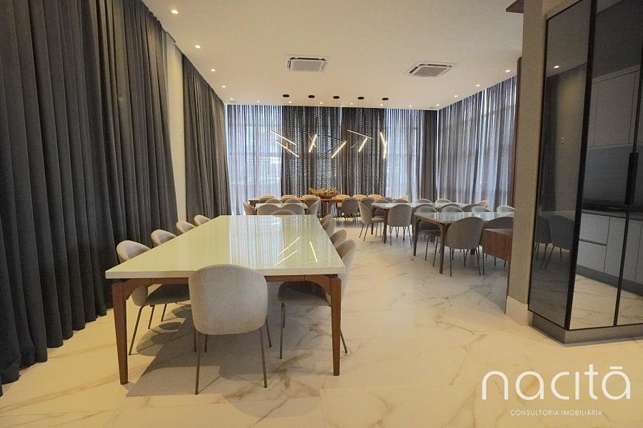 Com 203 m² de área privativa, o imóvel conta com 3 suítes, living espaçoso, lavabo, área gourmet com churrasqueira a carvão, terraço com piscina privativa e área de serviço, além de 3 vagas de garagem privativas.