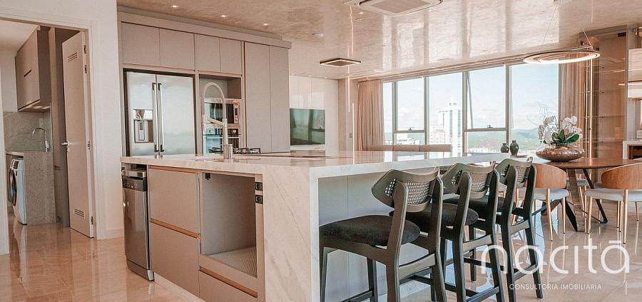 Com 232 m² de área privativa, o apartamento é mobiliado e equipado, com ambientes amplos e bem distribuídos, proporcionando elegância e funcionalidade no dia a dia. O imóvel conta com 3 suítes e 4 vagas de garagem, atendendo perfeitamente famílias que buscam conforto e praticidade.