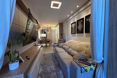 O apartamento conta com 2 suítes, 3 banheiros, 2 vagas de garagem, uma sala de estar e jantar integradas, cozinha planejada, além de uma sacada com churrasqueira, perfeita para momentos especiais com família e amigos. A lavanderia separada e o lavabo complementam a funcionalidade do espaço, enquanto o acabamento em gesso e o piso em porcelanato garantem sofisticação em cada detalhe.