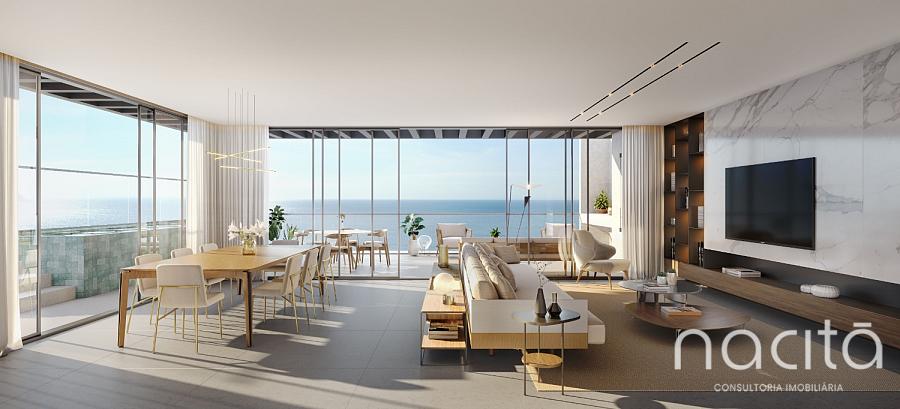 Apartamentos prontos para morar, de 219 m² a 453 m² privativos, com 3 a 4 suítes, amplos espaços integrados e vista permanente para o mar, unem conforto e elegância em cada detalhe.