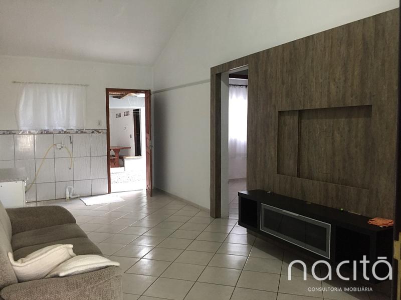 2 dormitórios, banheiro, sala, cozinha, área de serviço, garagem para 2 carros e área externa.
