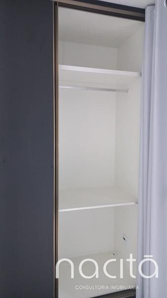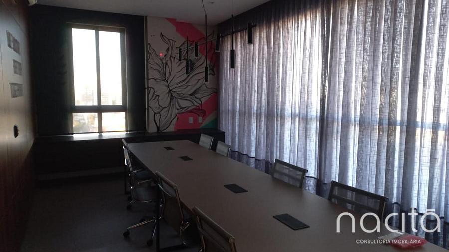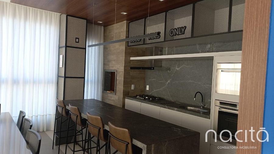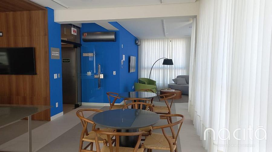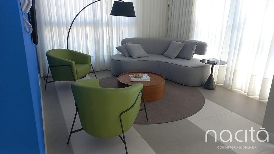 Com 46,32 m² de área privativa, o imóvel possui ambiente integrado de quarto e sala, banheiro social e 1 vaga de garagem. Os acabamentos valorizam o espaço, com piso porcelanato nas áreas sociais, piso laminado no dormitório e forro em gesso, proporcionando um visual contemporâneo e aconchegante.